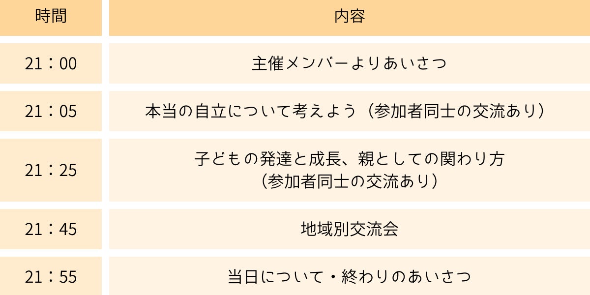 事前交流会では、自立やお子さん発達に関する知識を得ることが目的になっています。私たちのチームメンバーは、出産前から中学生までの発達や心の変化について語れるプロがそろっています。