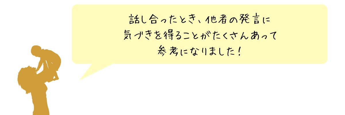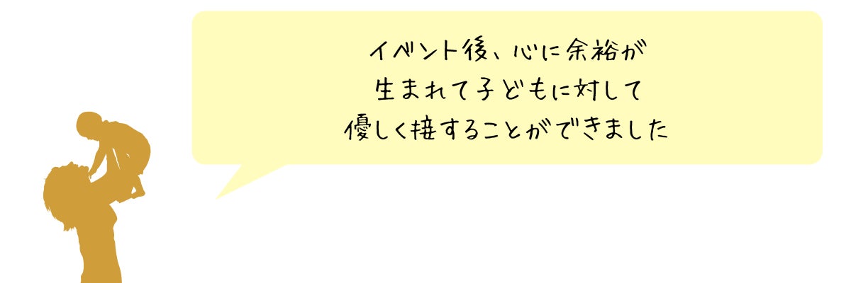 上記の内容を通して、参加者さん同士には交流をしていただき、イベント後も励まし合える関係を築くことも目的の一つになっています。イベント終了後には、きっとお子さんの気持ちをもっと理解できるようになり、声かけの意識が高まるはずです。