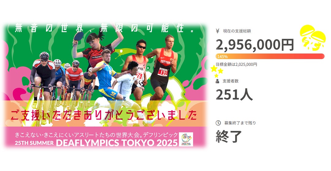 プロジェクトの目標を達成できたことは、多くの方にデフリンピックを知っていただき、プロジェクトを応援したいと思っていただけた結果だと感じております。