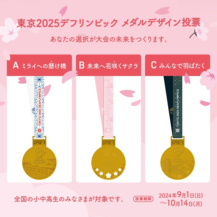 東京2025デフリンピックで選手の胸に輝くメダルは、候補3案から小中高生による投票でデザインが決定します。