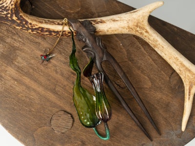 パーツ毎に使用するワイヤーの太さやディップ液(樹脂液) の濃度を変えながら、作品が引き立つように工夫をし制作を行います。