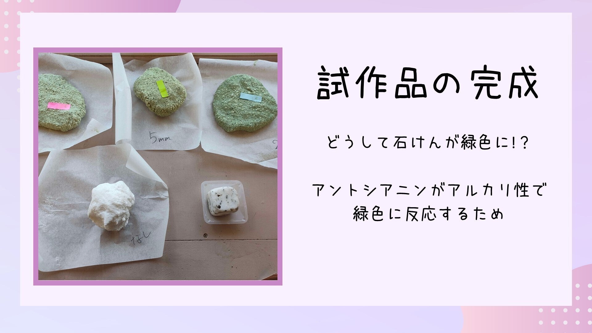 研究を始めた当時は新型コロナウイルスが世界中に蔓延しており、石けん不足が世の中で問題になっていました。そこで、アンチエイジング効果があり、ヤラピンの効果で除菌をして感染症にならないようにしよう!というのが私たちの目標でした。