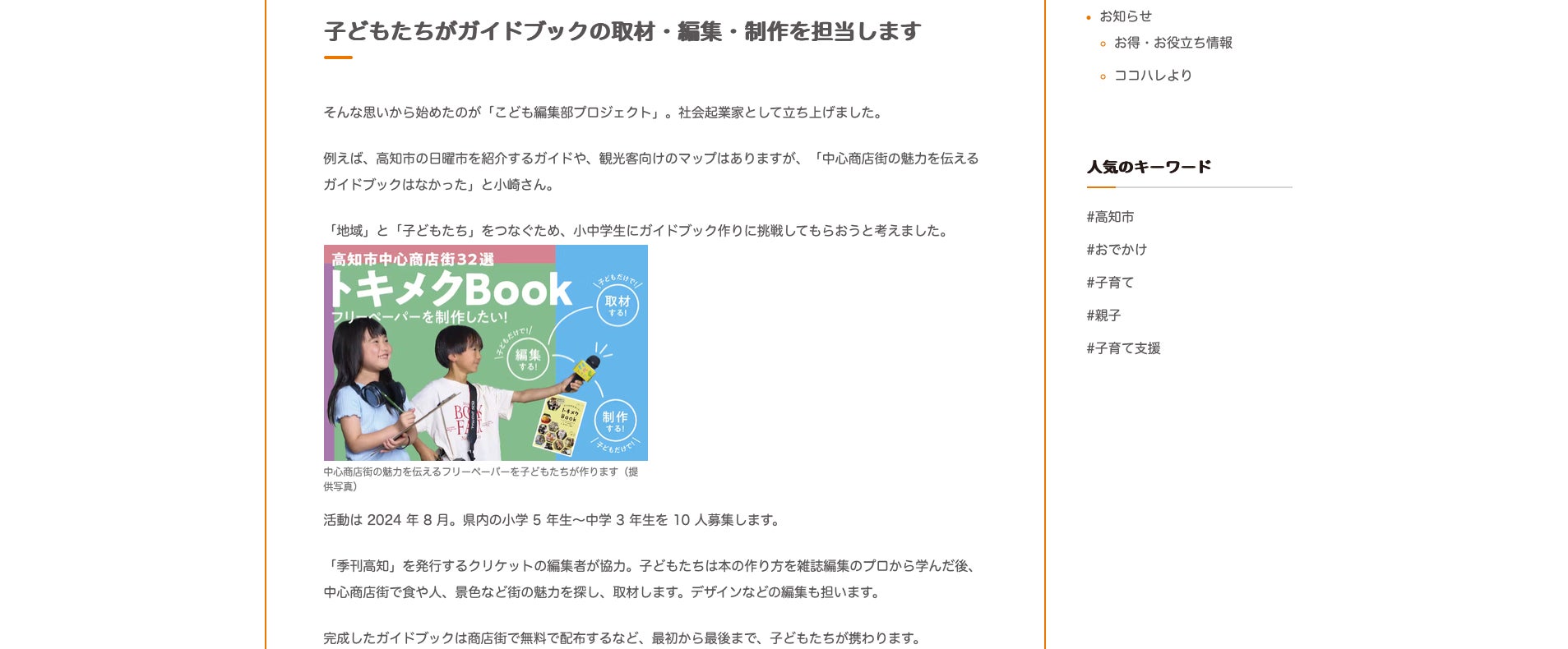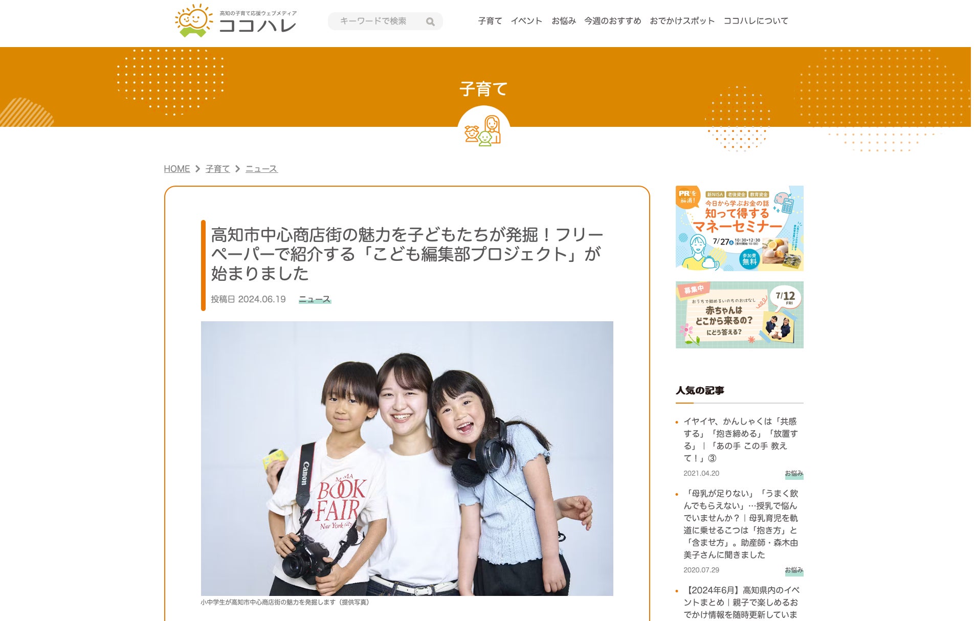 皆さん、高知の子育て応援ウェブメディア「ココハレ」さんをご存知ですか?