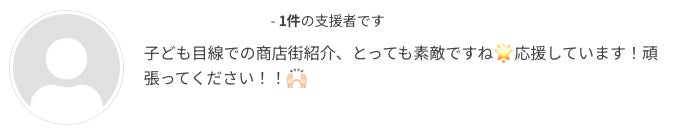 もちろん、他にも沢山の応援メッセージをいただきました!!一つ一つ、大切に読ませていただいております。プロジェクトの実現に向けて、チーム一同の励みになると共に、絶対に成功させたい!という意志が日に日に増しています。