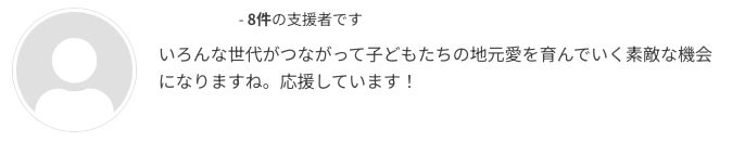 ありがとうございます!!このプロジェクトが地域の活性化に繋がること、そして、子どもたちの学びの機会となることを感じ取っていただけた様で、大変嬉しく思います。実現に向けて、邁進致します!