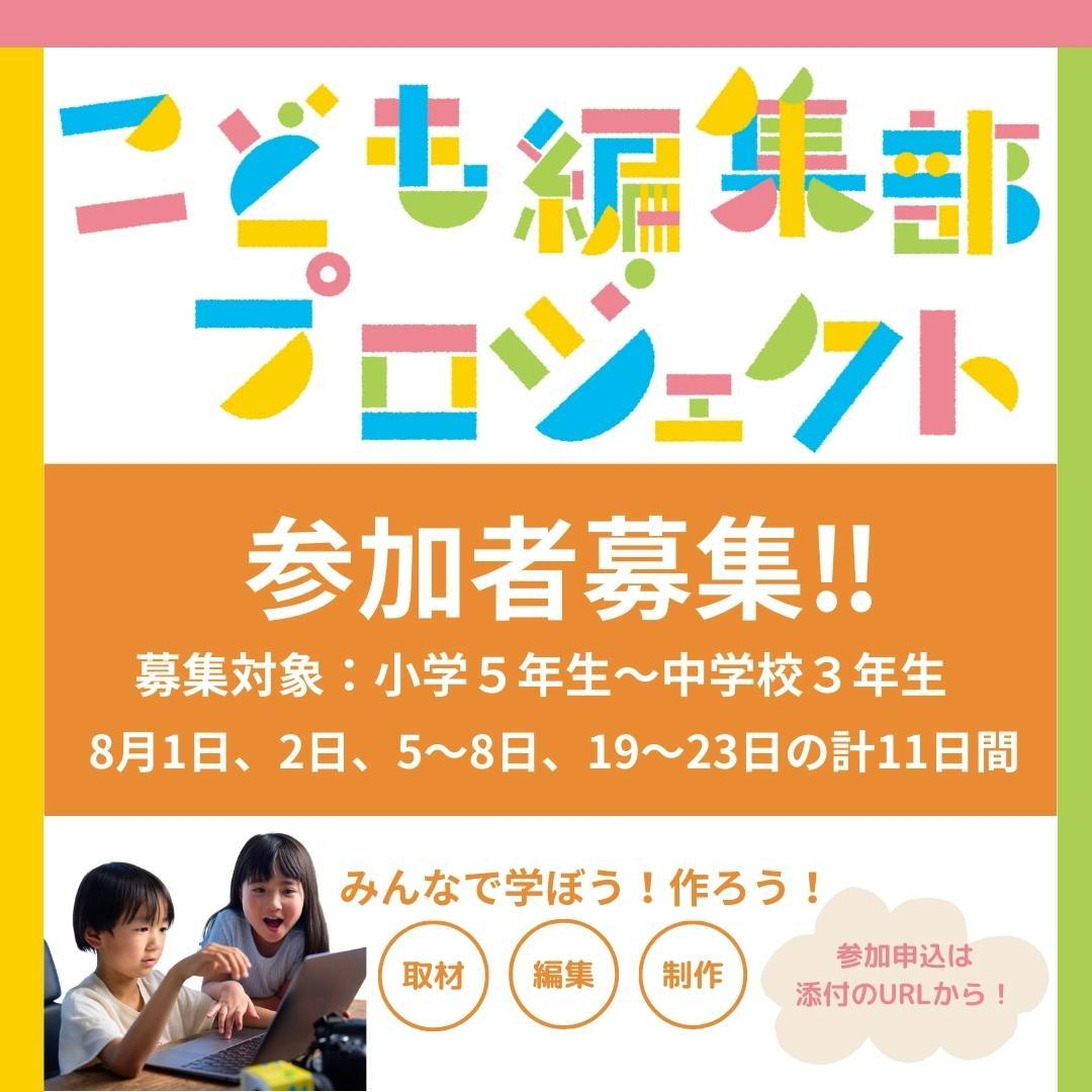 ◇日時:8月1日、2日、5日〜8日、19日〜23日(計11日間)9時〜16時(※全日程参加できる方に限らせていただきます)