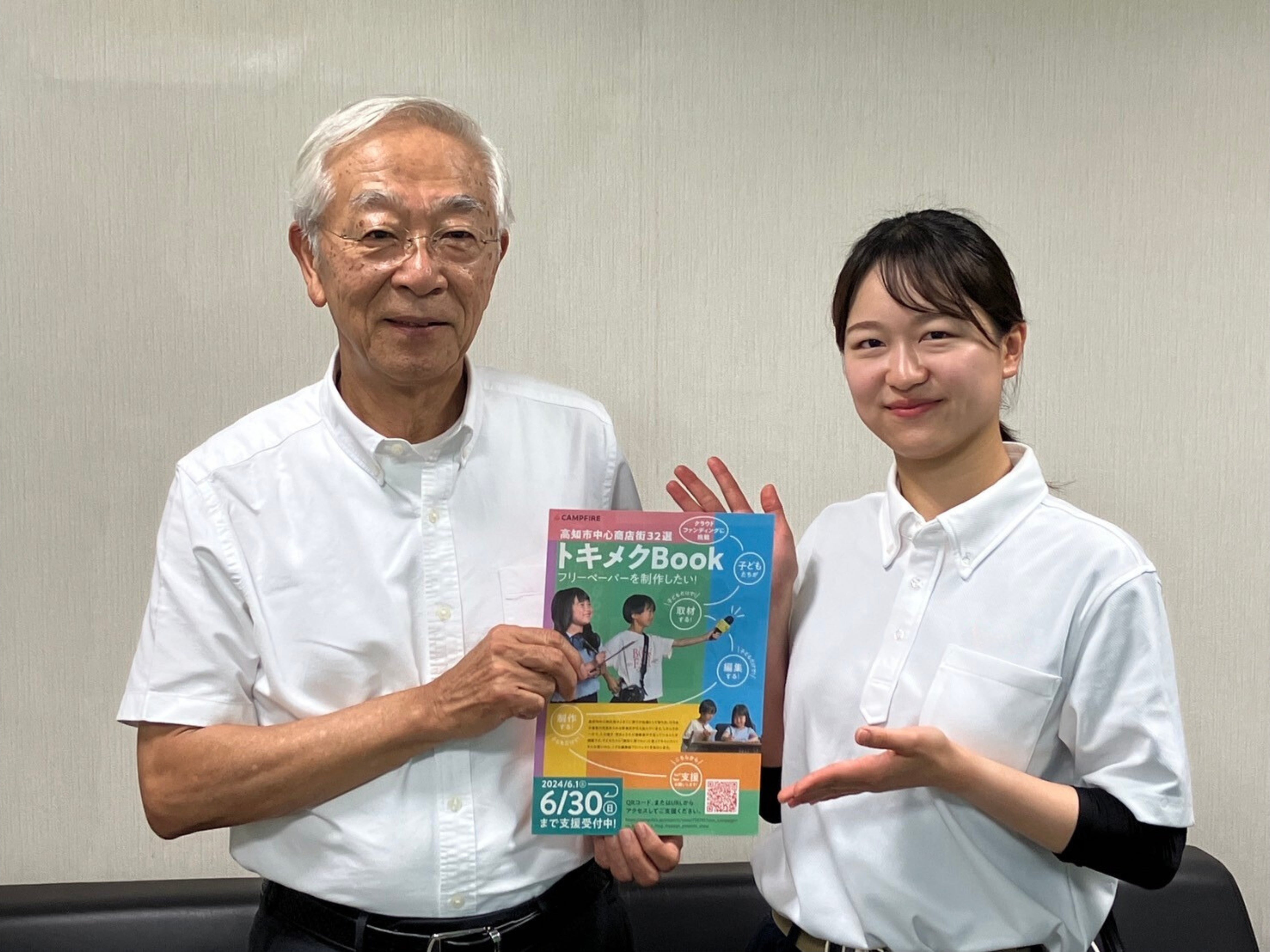 支援の募集終了まで残り6日となりました。ここ1週間程で、皆様からのご支援と温かいエールが急激に勢いを増しており、驚きと嬉しさでいっぱいです。このプロジェクトを応援してくださっている皆様一人ひとりが、周りの方にシェアし、お声がけしてくださっているお陰なのだなと心から感謝しております。今回は、さんさんテレビ様の「プライムこうちF」でクラウドファンディングの取材をしていただいた動画のご紹介です!こども編集部プロジェクトの舞台となる帯屋町商店街で撮影していただきました。雨模様が怪しかった当日ですが、撮り終わった突端にパラパラと雨が降り出し、屋根のない場所でも撮影することができました。動いている小﨑(モモ)は見たことないぞ…という方、是非再生してみて下さい(笑)返礼品のオリジナルTシャツも着ていますよー! ⇓ ⇓ ⇓ ⇓ ⇓■お問い合わせ TEL:080-8852-2497 担当:小﨑