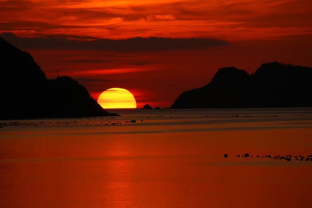 焼内湾は、特に波が少なく、静かな環境でゆったりとサンセットの美しさを堪能できることが魅力です。夕日が海に沈む瞬間を、特別な人と共に過ごすのに最適な場です。
