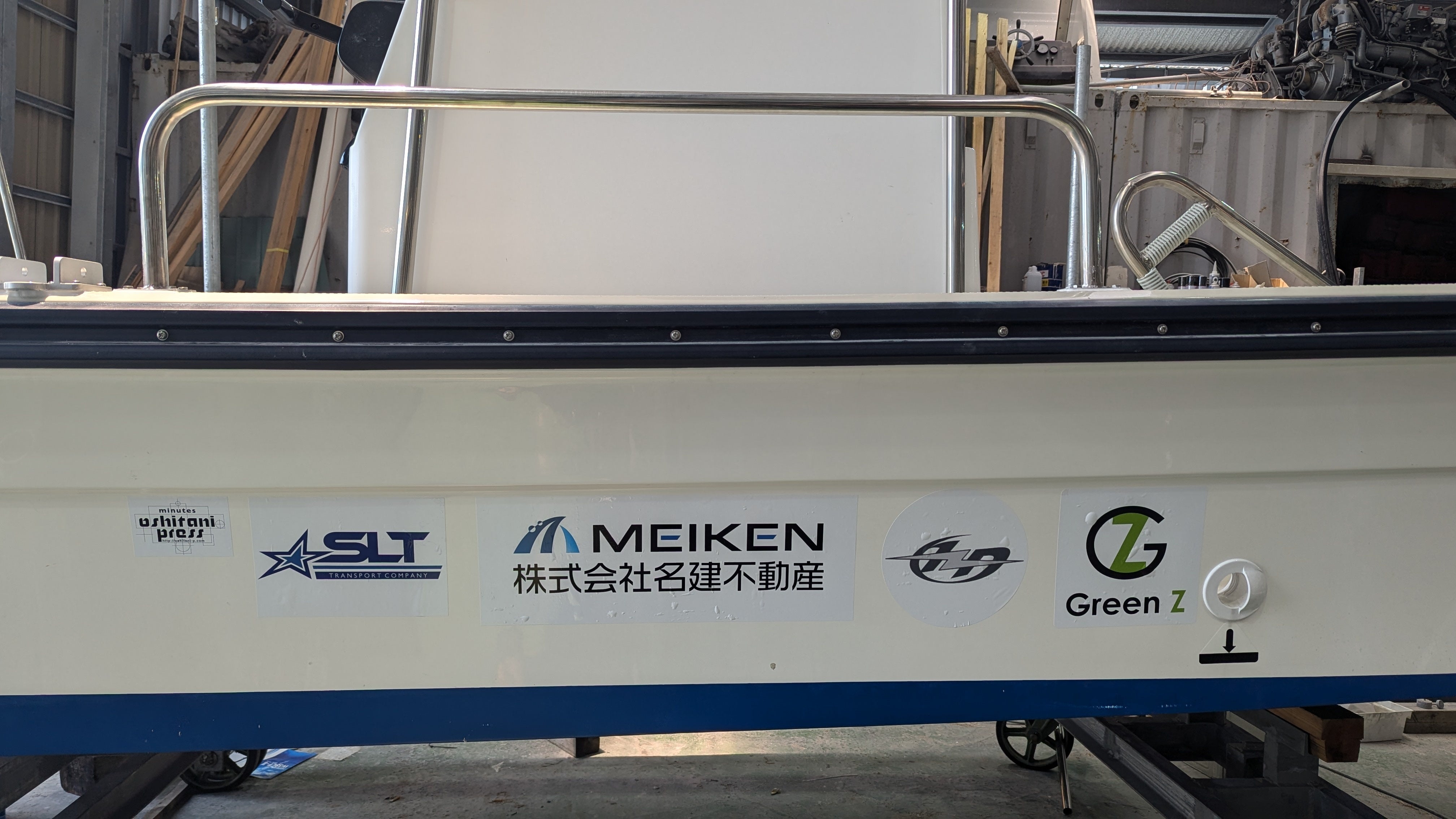 船体へ企業ロゴのステッカーを掲載しました。