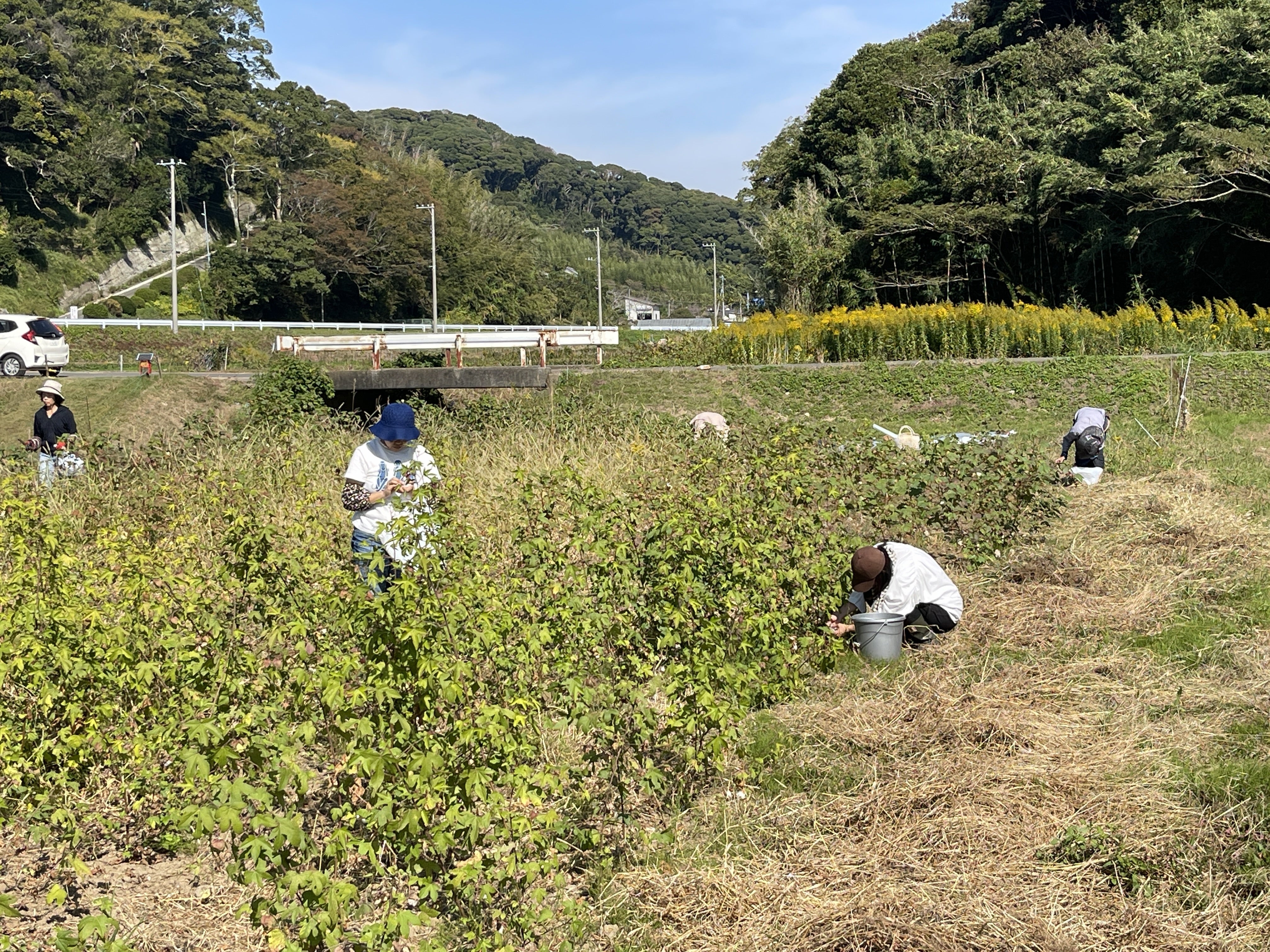その当時から現在に至るまで50年間。村全体で無農薬無化学肥料を守り続けていることを知り、ぜひメイド・イン・アースも和綿の畑を持ちたいと思い、当時、旧三芳村の活性のために行われていたクラウドファンディングを通じて現在に至りました。