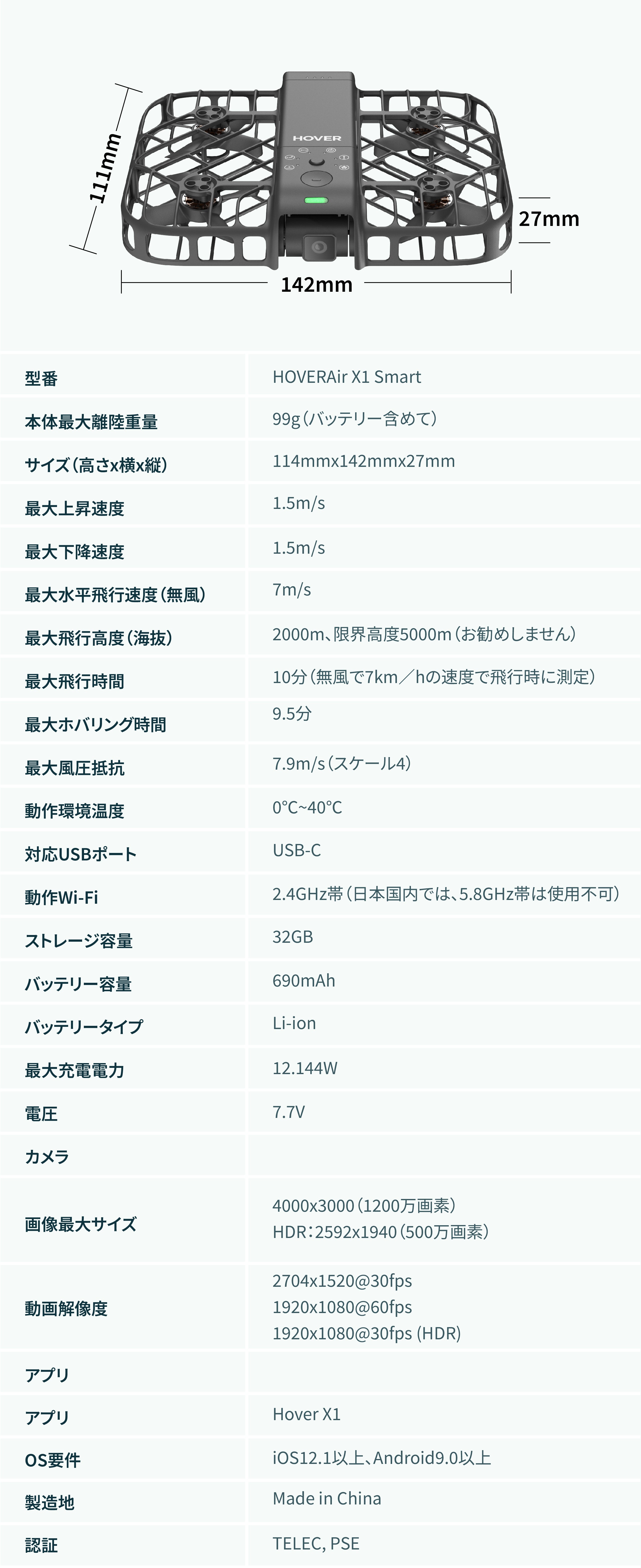 AI飛行カメラの殻を破る、わずか99g!日本向けに新たに開発された特別仕様。軽量・コンパクトなデザインがさらに進化!100g未満のため、機体の登録申請とリモートID機器の搭載が一切不要!届いたらすぐに楽しめる、日本での「使いやすさ」を徹底追求!