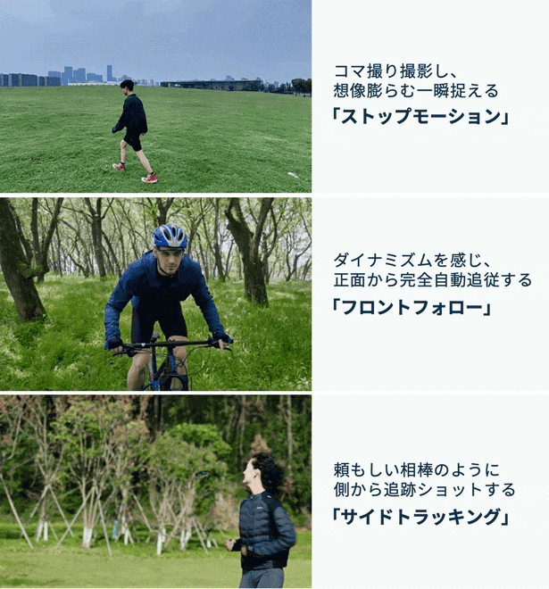 あなたの背後を追いかけるように追随し、アクションムービーのような迫力ある映像を実現。