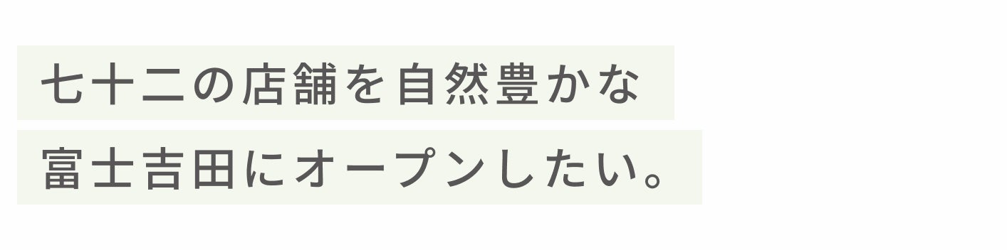 七十二の活動を始めて6年目となる2025年3月に、富士吉田の山麓で実店舗をオープンします。(2025年2月プレオープン予定。)