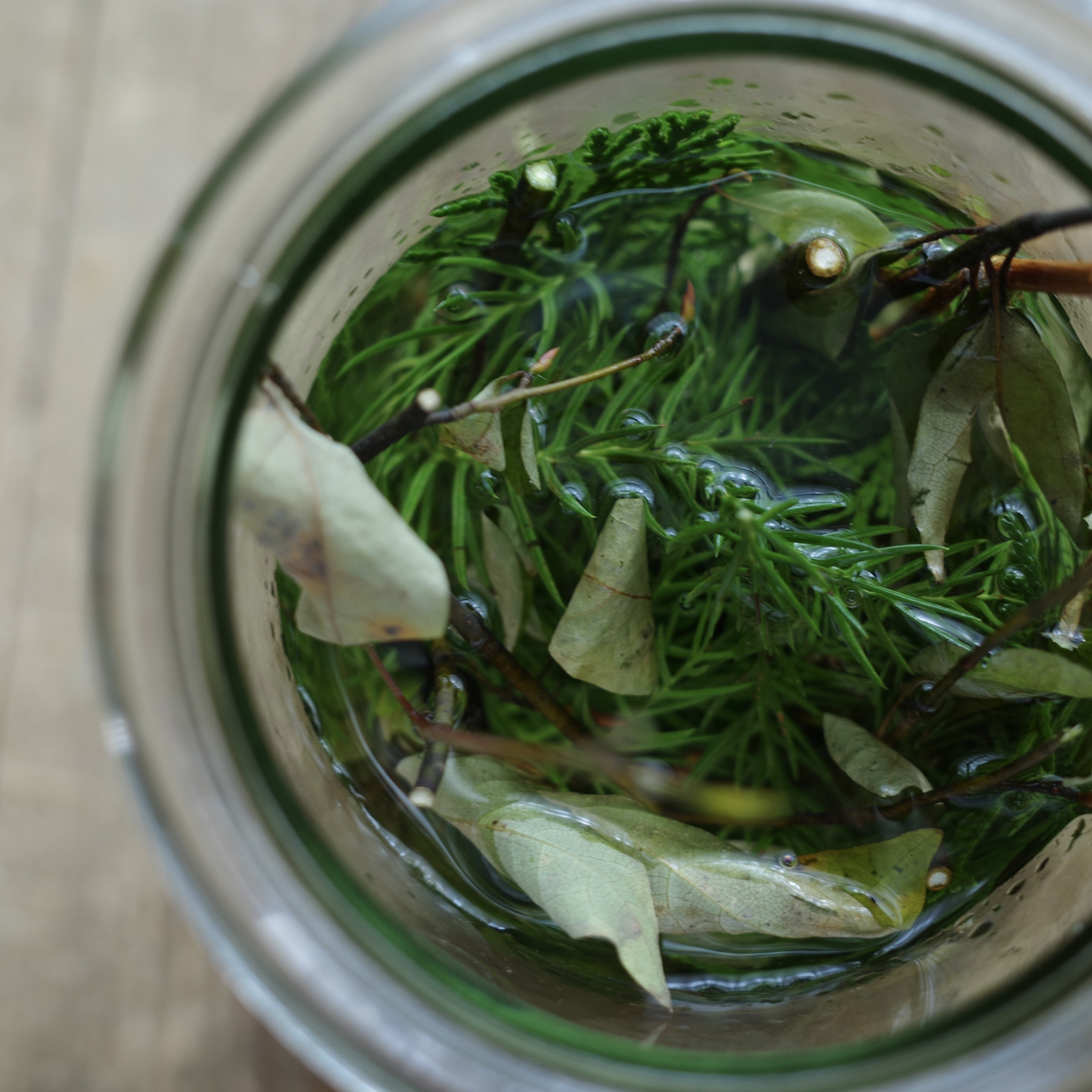 七十二は地域の採集事業者の方と連携し、所有者が管理できなくなった私有林を借りて剪定するように採取された森の植物を使用しています。