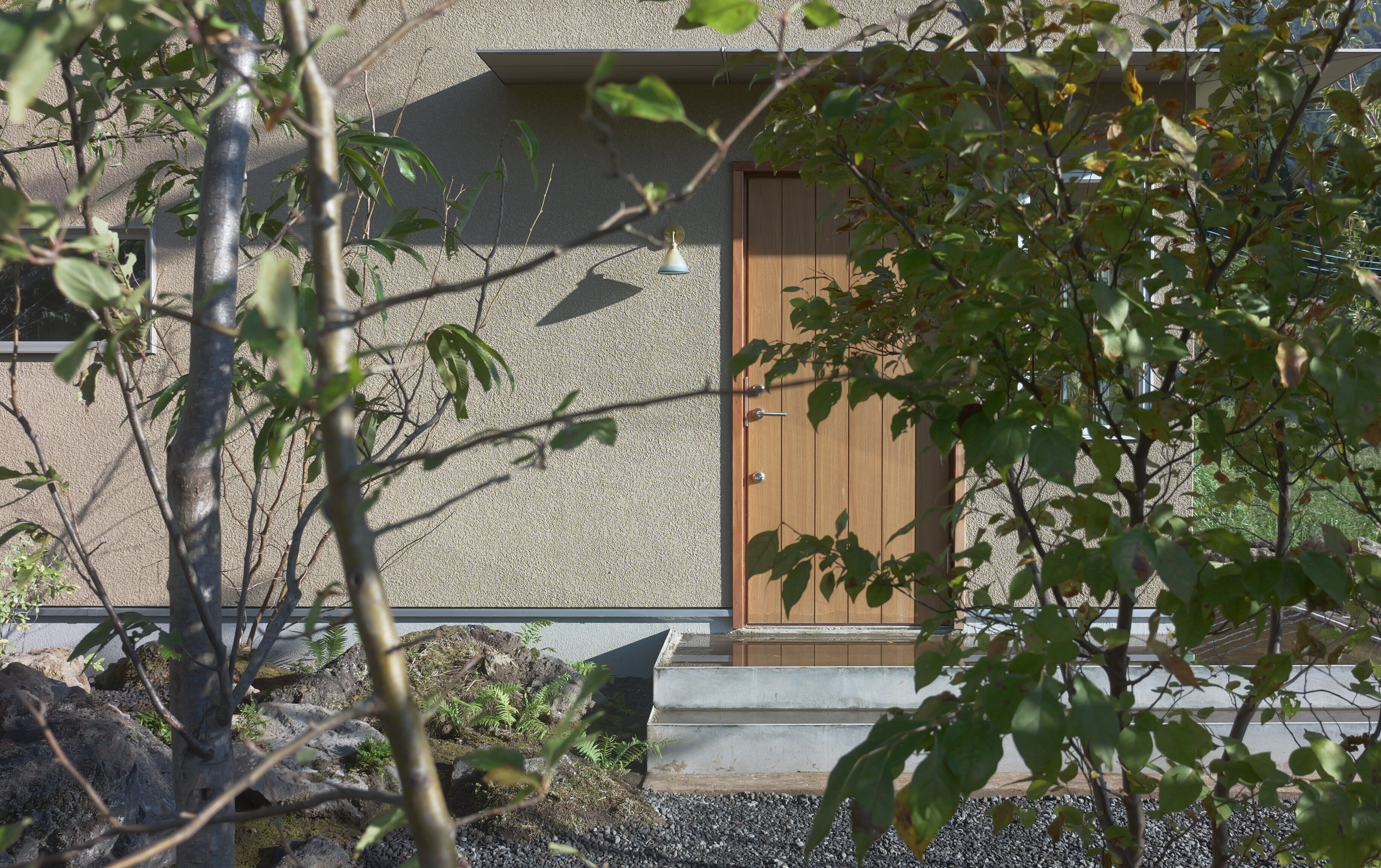 富士吉田の街並みが見渡せる山麓に位置し、森と暮らしの境界線にあるこの店舗は、
