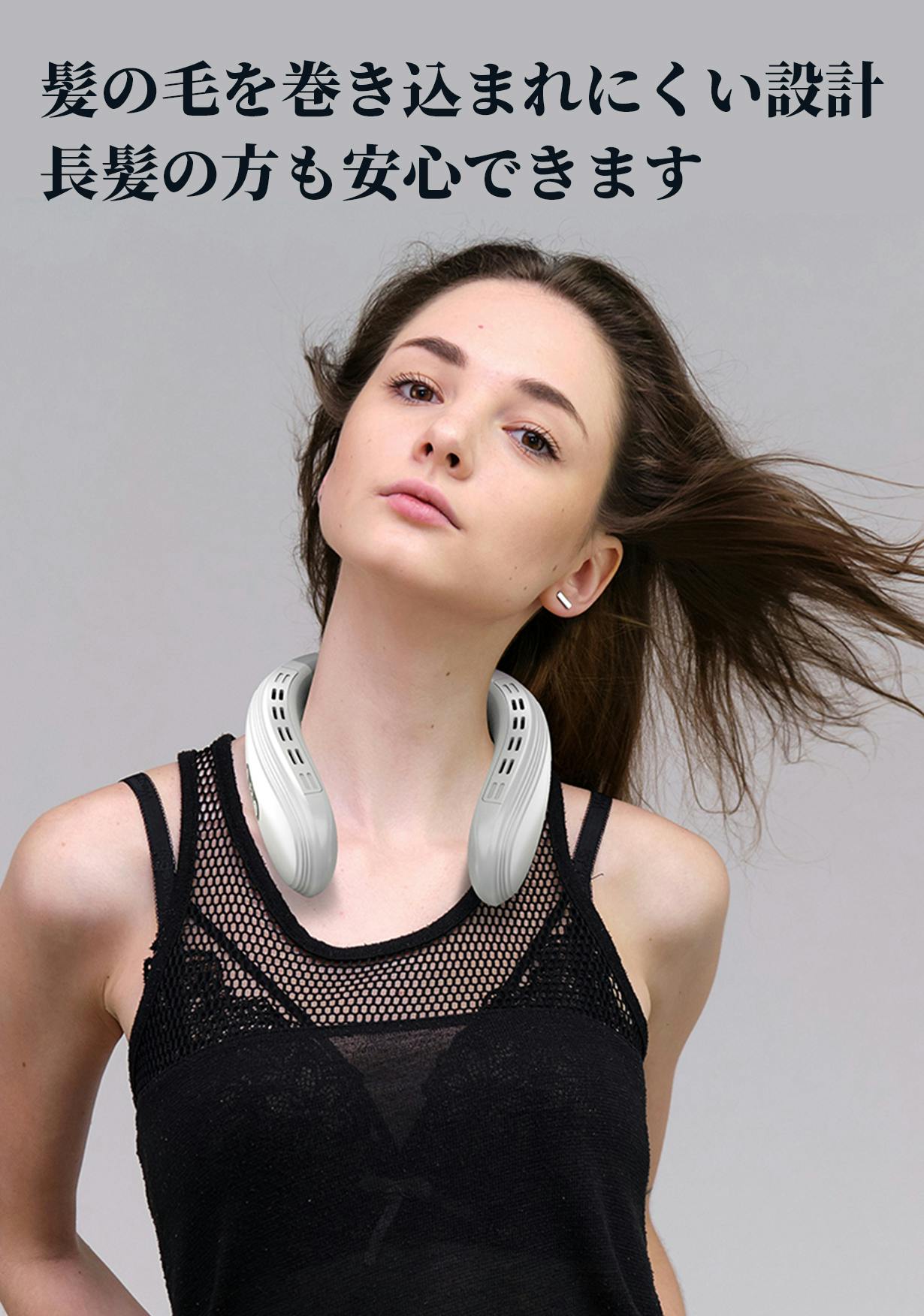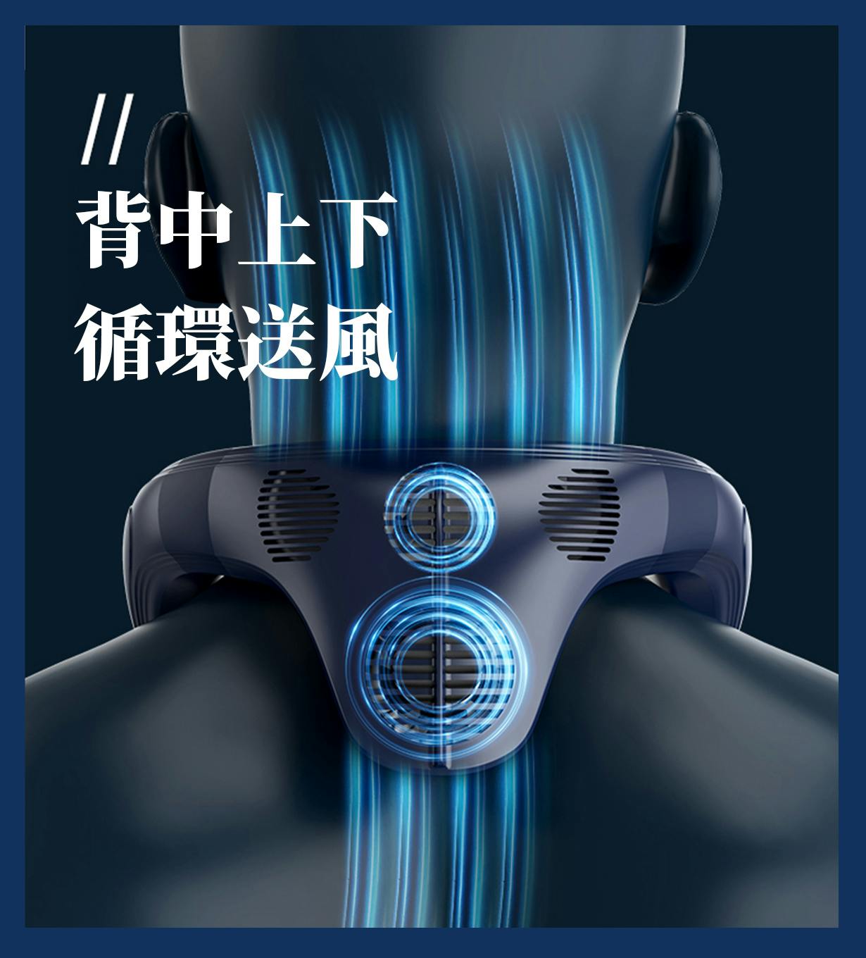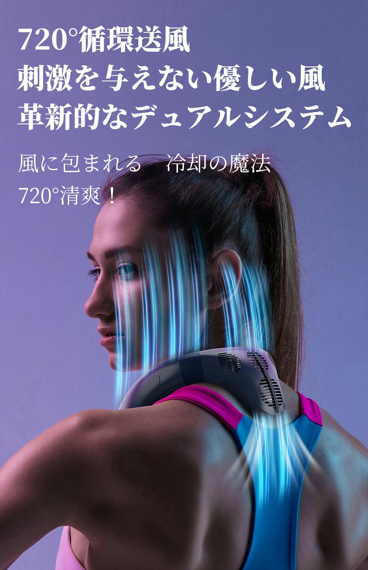 従来型の首掛け扇風機なら、送風は首周囲に集中しています。本製品なら背部と両側に風を上下循環され、涼しい風を全身に巡り、どでも心地よい!