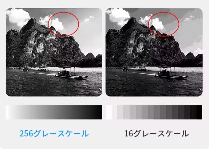 「256階調グレースケール」機能を使用すると、画面がより柔らかく、画像の表示がより自然になります。漫画や画像を見るのに最適です。