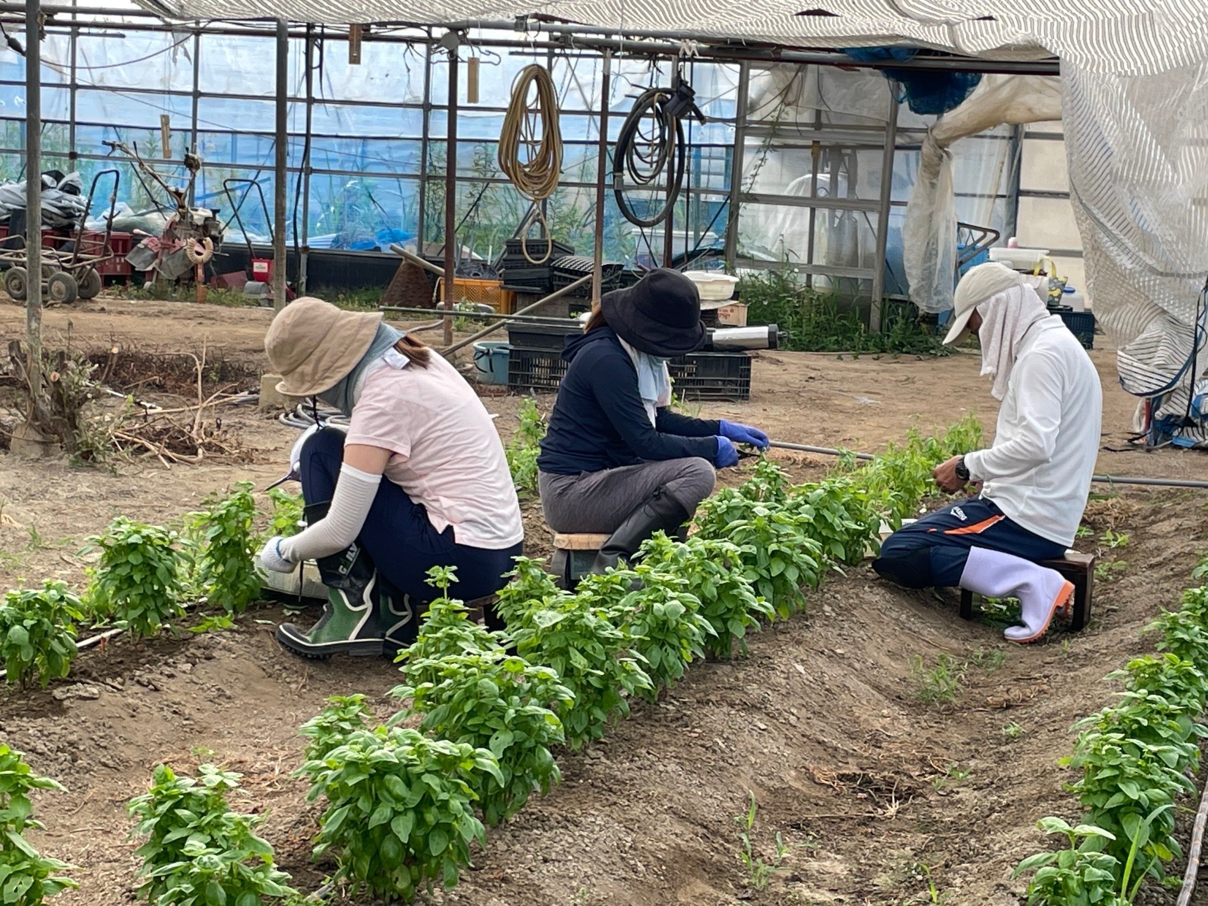 現在、我々のビニールハウスは7つ連なっています。これにより、一部に虫害が発生すると全てに広がってしまう問題があります。そのため、各々が独立したビニールハウス(単棟)を建設することを目指しています。