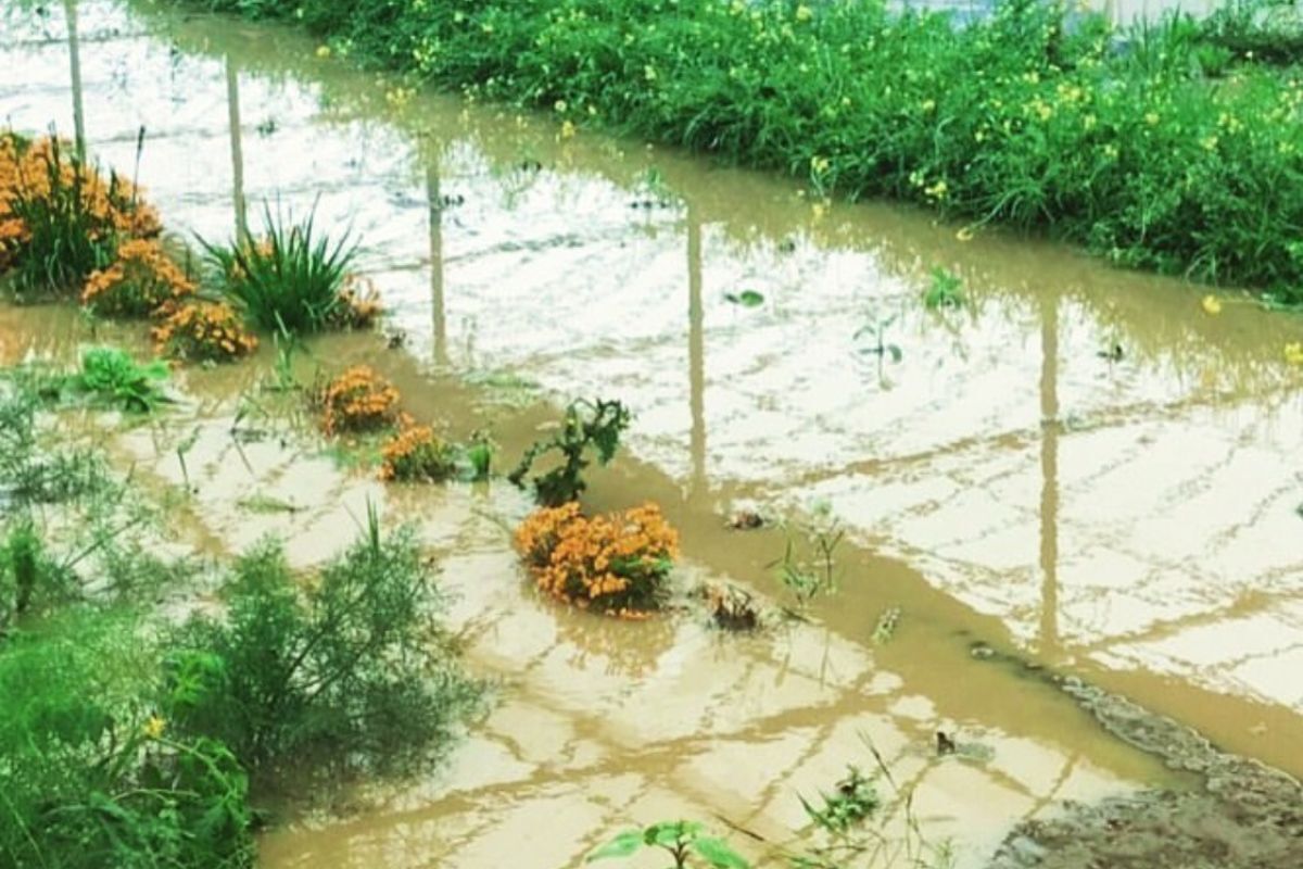 雨が続くと、中には入れず田んぼのような光景に