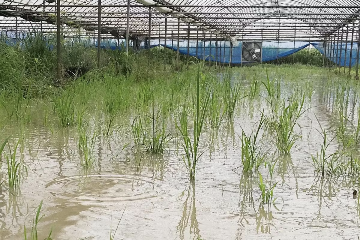 ハウスの修繕が追いつかず、大雨のあとはハウスとは思えない湖状態