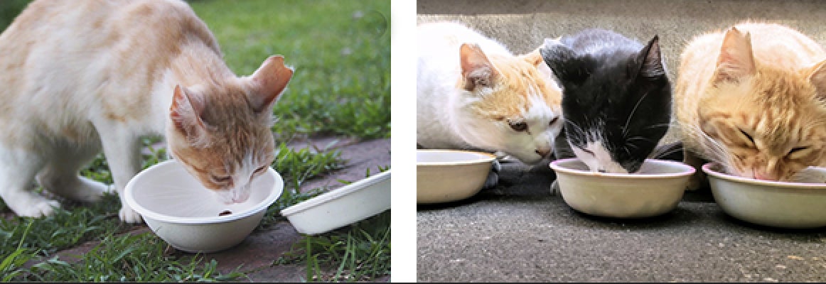いまはそれぞれの自宅の庭に、エサ場とトイレを置き野良ねこたちのお世話をしています。