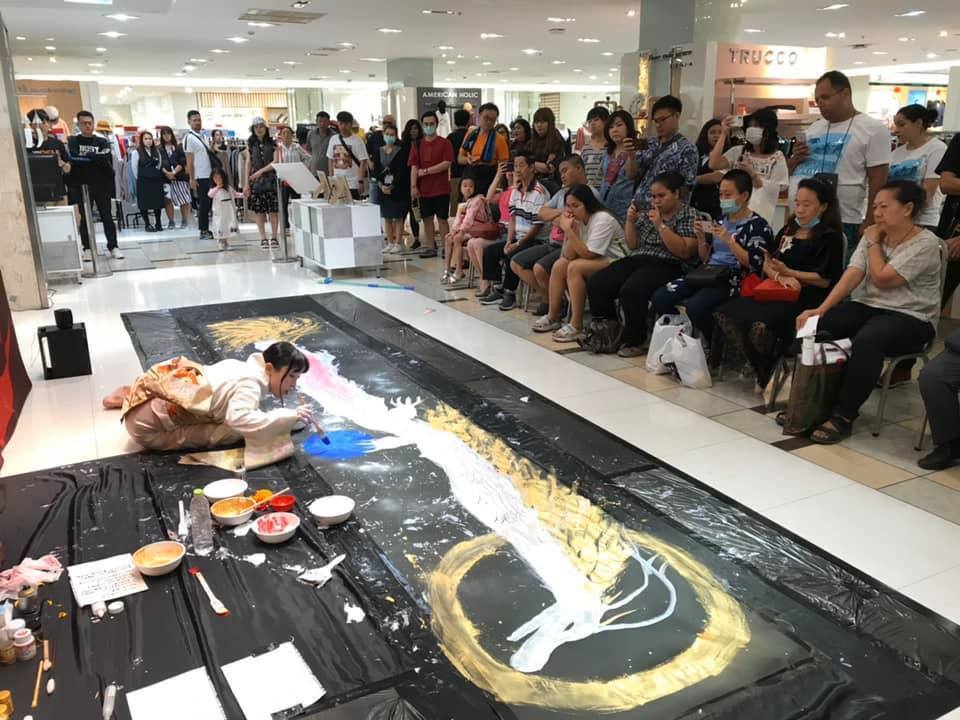 この時は知り合いもおらず、勝手がわからないままでしたが、単身渡った伊勢丹タイランドにてのパフォーマンスでは、見ていただいた方との交流が今も続き、規模を大きくした今回のバンコクでの個展にも力を注いでいただくことになりました。