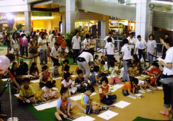 こうした絵本作家としての活動の中、2008年にはマレーシアで行われたHONDAマレーシアが主催する「スマトラサイレスキュープロジェクト」にパステル画講師として招待を受け、400名の現地の子どもたちにワークショップを開催しました。これが初めての海外での活動になります。