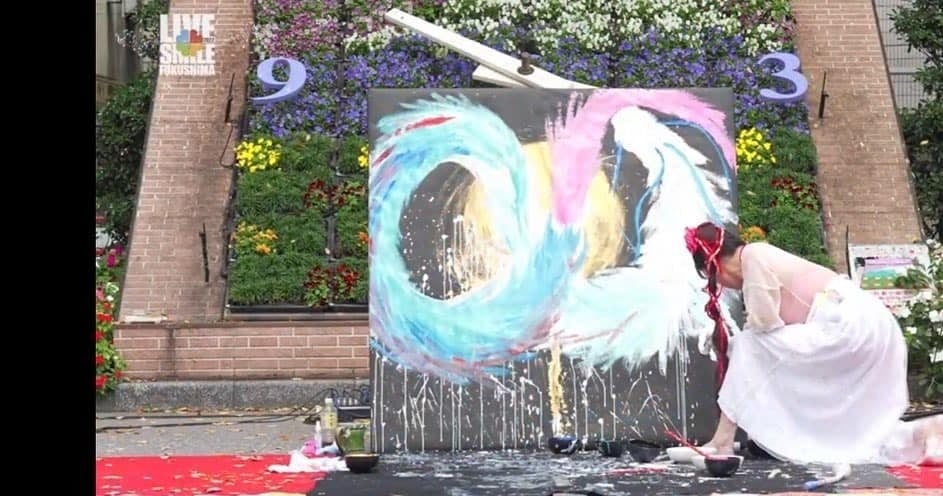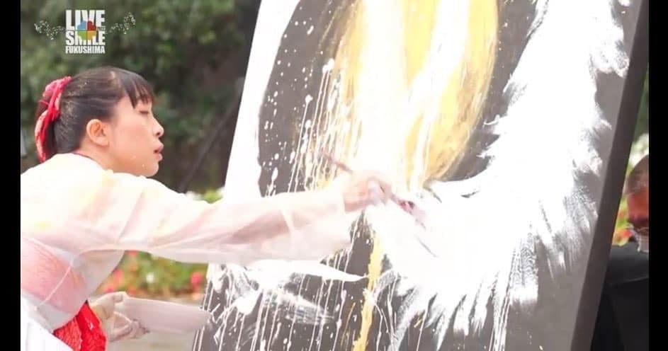 活動のメッセージが明確になったこともあり、イベントでのパフォーマンスをさらに精力的に続けた結果、福島市内のイベントにて描いた8メートルの龍画は、1260年以上の歴史ある小田鹿島神社に奉納されるなどますます順調に。