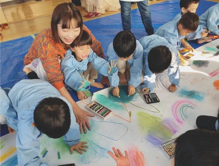 こうした絵本作家としての活動の中、2008年にはマレーシアで行われたHONDAマレーシアが主催する「スマトラサイレスキュープロジェクト」にパステル画講師として招待を受け、400名の現地の子どもたちにワークショップを開催しました。これが初めての海外での活動になります。