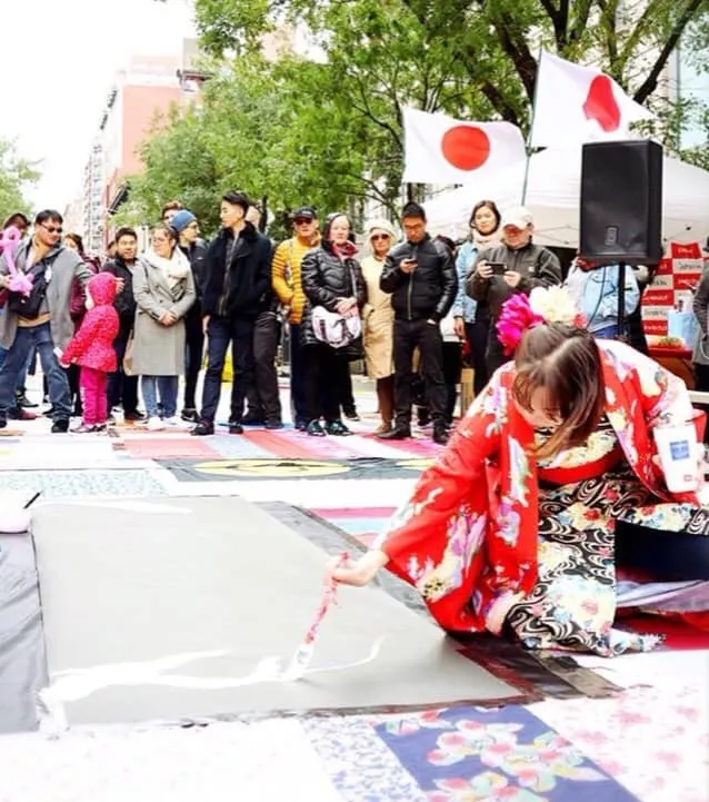 そして、その時出会った仲間に支えられて、次は2017年6月に同じニューヨークのストリートフェスで、初めてストリートパフォーマンスを行いました。テーマは、「不死鳥」。福島の復活を願って描いたパフォーマンスは、大きな反響をいただきました。