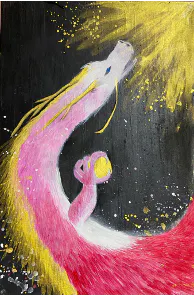そんな私が、あるご縁をきっかけに、絵本とは少し違う画風の龍を描くようになり、2019年には福島の1260年以上の歴史がある神社にパフォーマンスで描いた8メートルの白龍を奉納し、作品は今後何百年も残る神様になりました。 ここまで私を支えてくれた方々のためにも もう一度世界にでていき、日本人としても恩返しをしていけたらいいとおもっています。