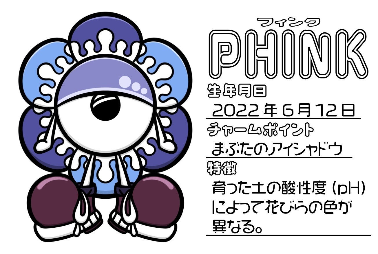 紫陽花からインスピレーションを得て生み出されたオリジナルキャラクター「PHINK」(読み方:フィンク)。