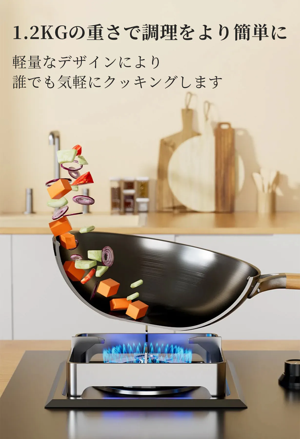 1.2kgの重さで誰でも簡単にクッキングします。普通より容量が大きくてご家庭用に最適です!