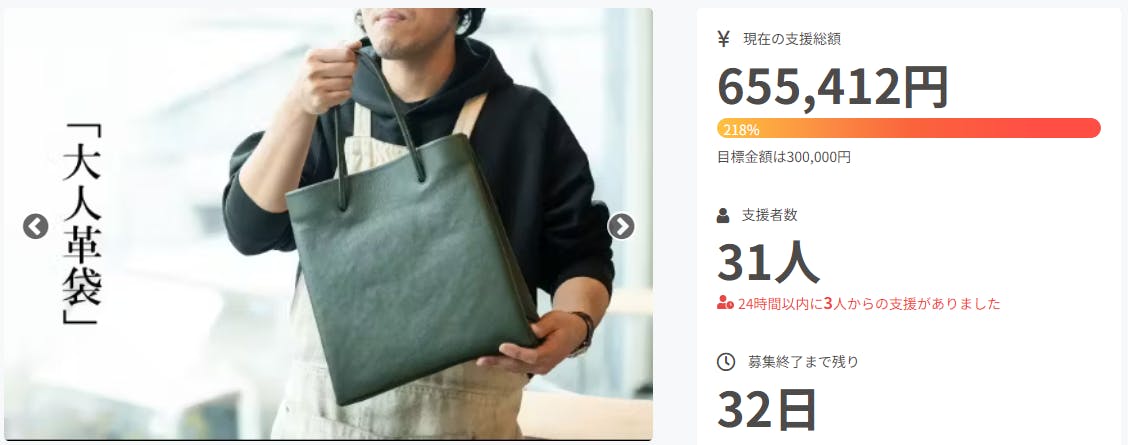 「大人革袋」プロジェクトはお陰様で達成率が218%に到達することができました!!