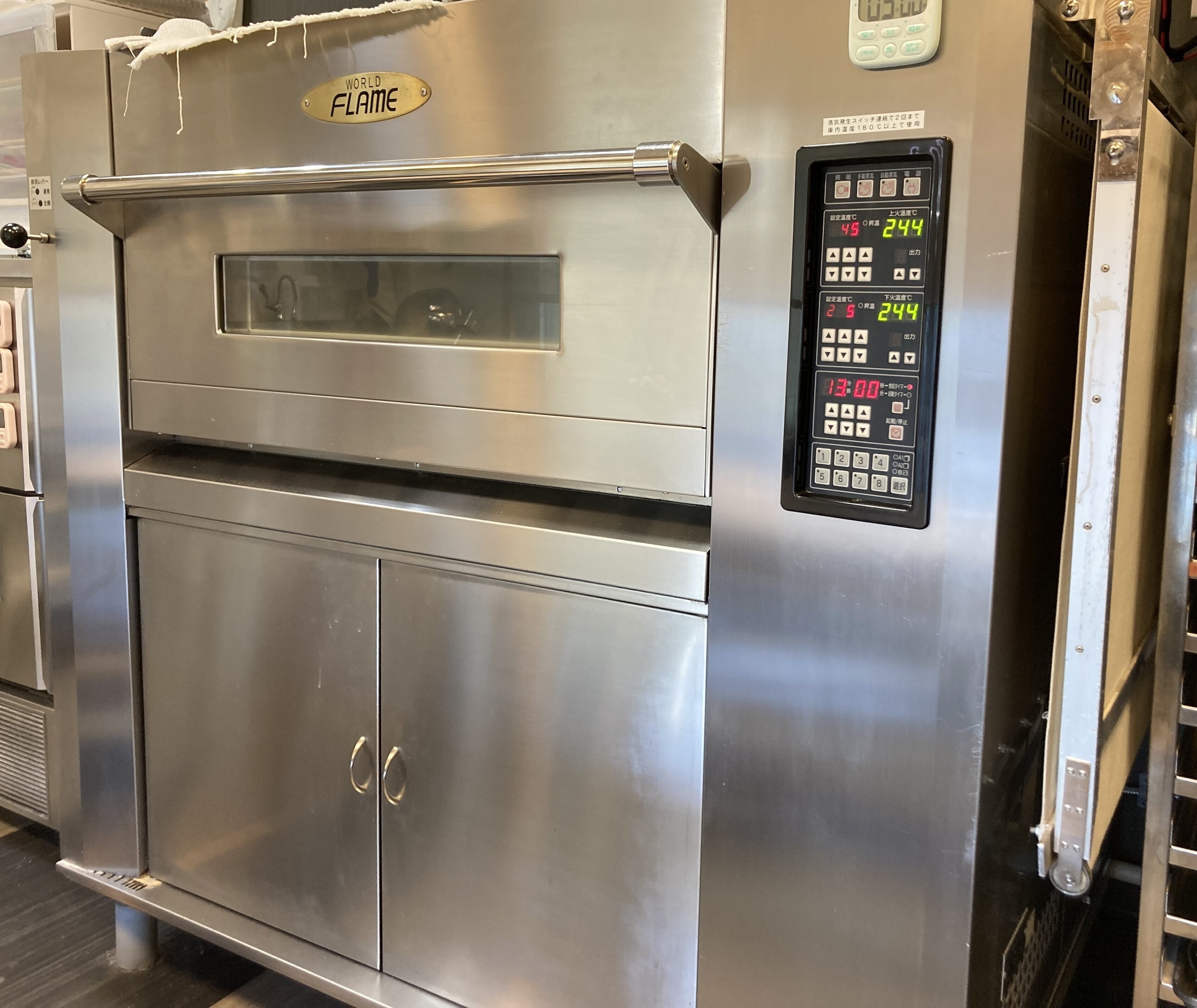 1段のオーブンは大きな天板が2枚入りますが、焼きあがる時間を計算して作業に待ち時間がでることもあり非効率でした。