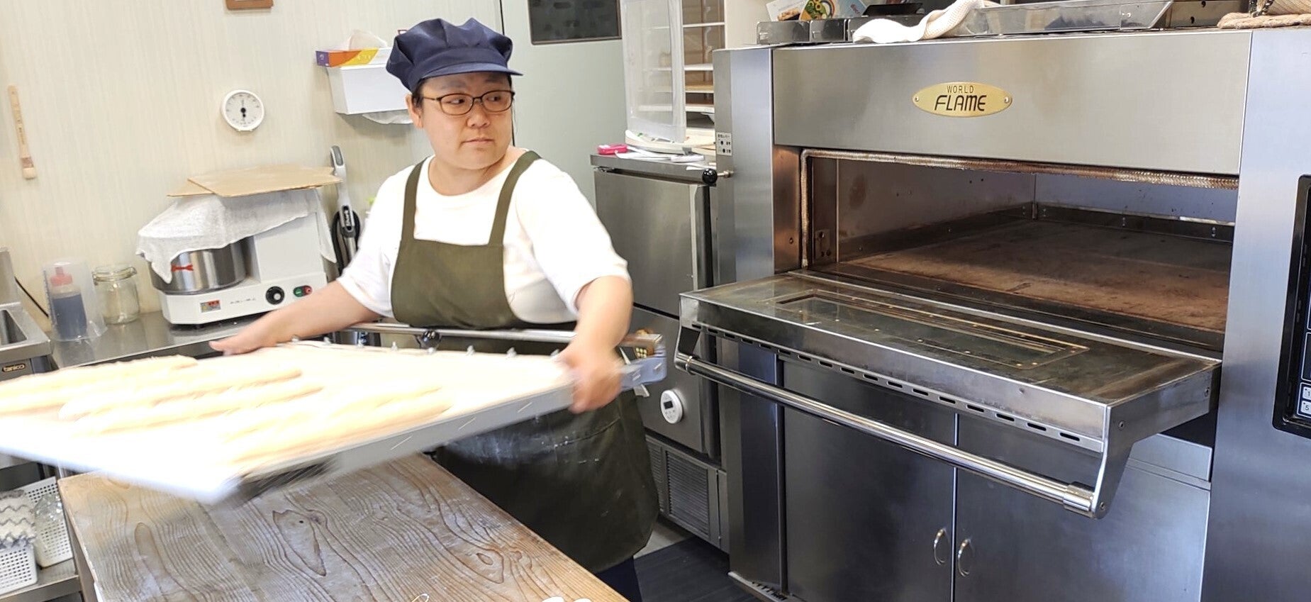 6月再オープン時には、オーブンを2倍、ミキサーを4倍の容量にしています。また、空調設備が弱くて製造に支障が出ていた為、空調設備も整えました。