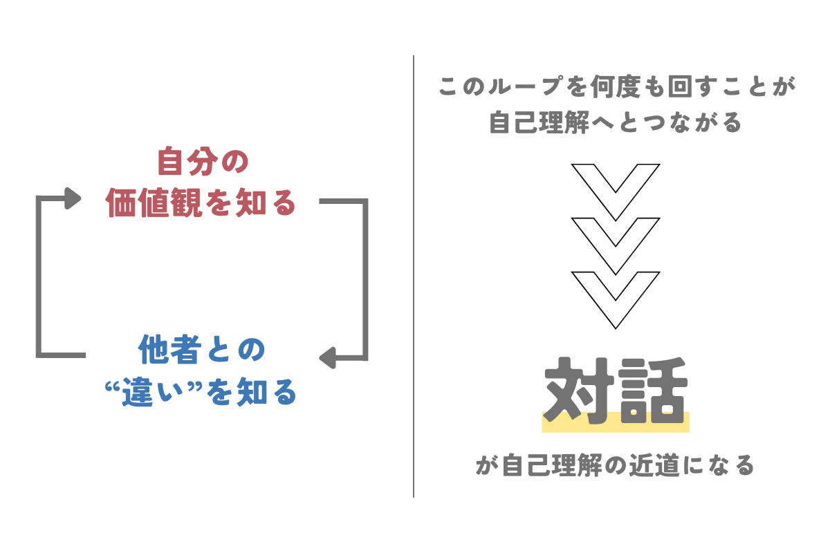 そこで「自己理解」についてたくさん調べた結果「対話」が鍵になるのではないかと考えました。