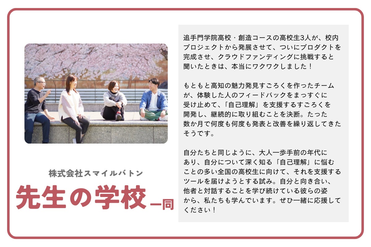 できるだけ多くの中高生に自己理解学習を広められるようにこれからも頑張っていきます。