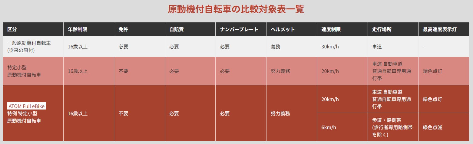 特例特定小型原動付自転車のカテゴリをよく理解し、改正道路交通法の規則に従って安全に走行して下さい。