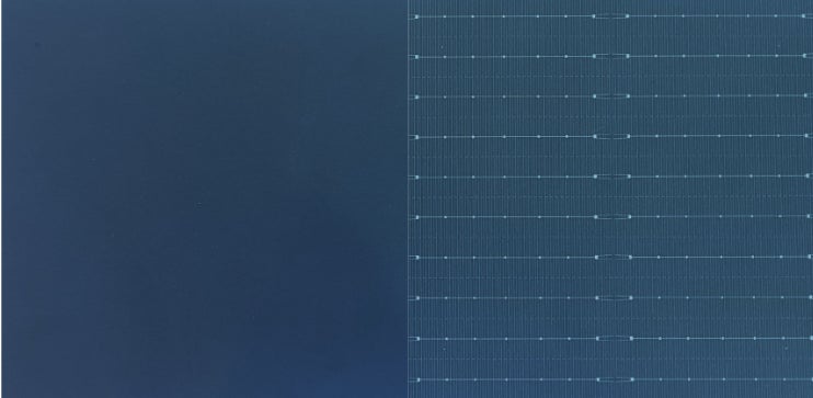 HPBC テクノロジーは、Hybrid Passivated Back Contact の略で、前面にバスバー(配電盤や制御盤に電源を各部分に接続する導体棒のこと)がある従来のフロントコンタクト型太陽電池とは異なり、HPBC セルでは電気接点が背面に移動しています。