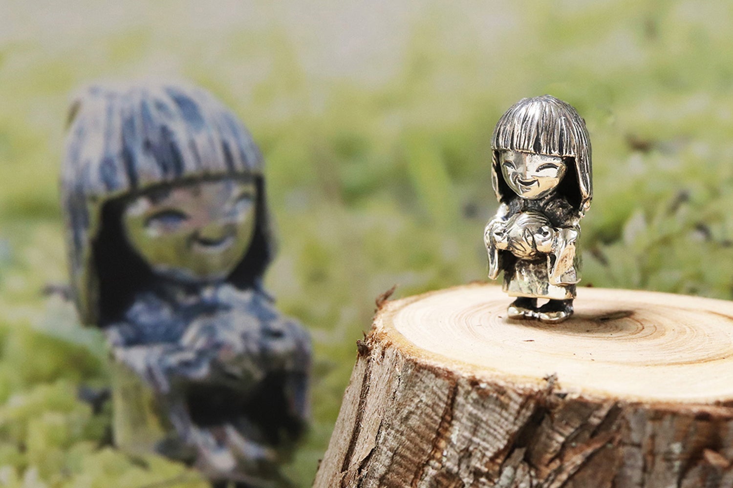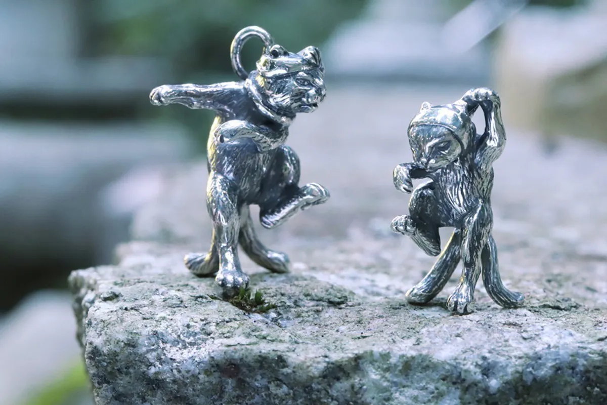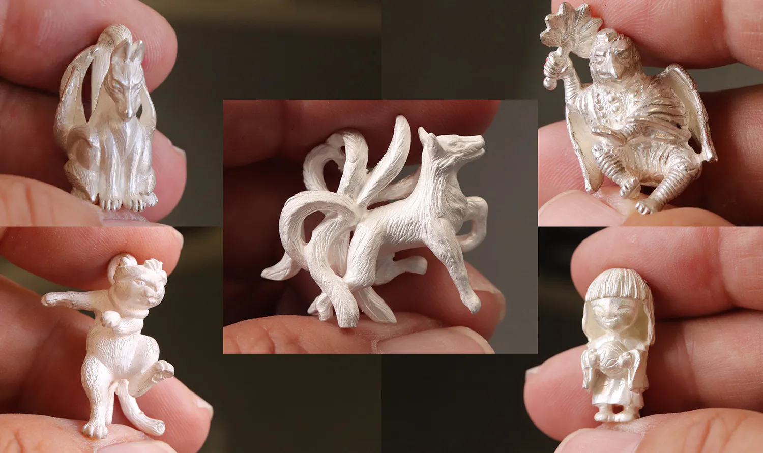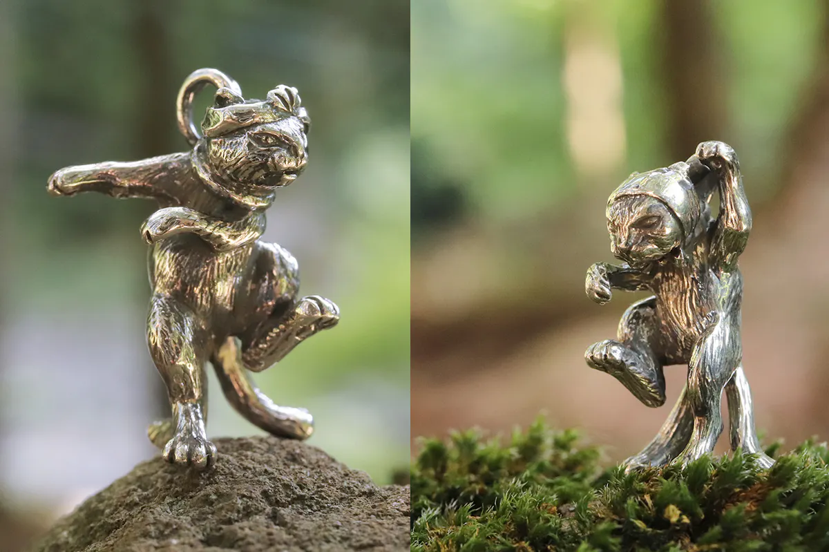 小さなアクセサリーの中のキャラクターの表情、筋骨、動物の毛並みや鳥の羽、爪や肉球を見てきっと驚くことでしょう。一方で、生命力あふれるダイナミックな表現も大切にしています。