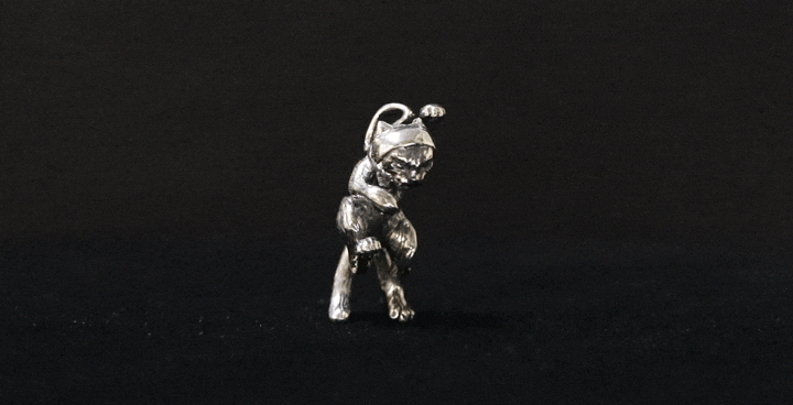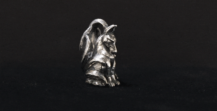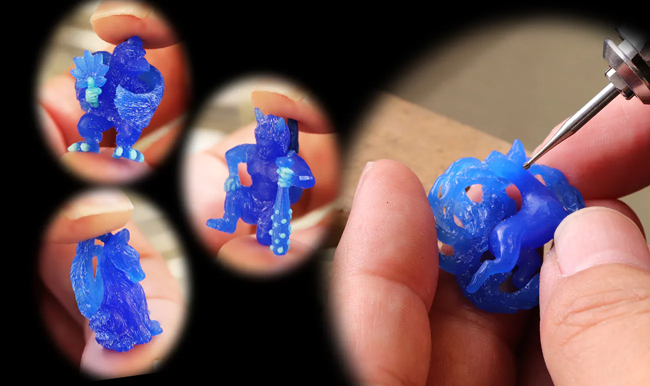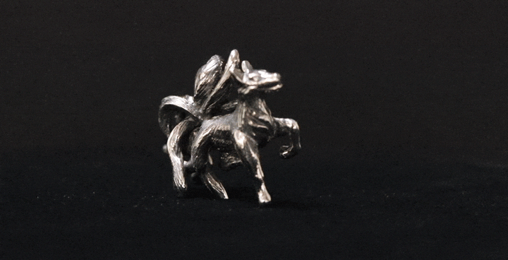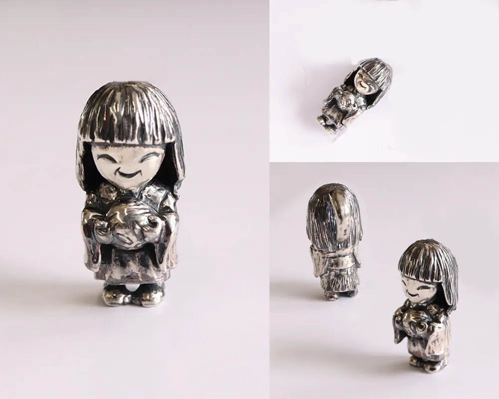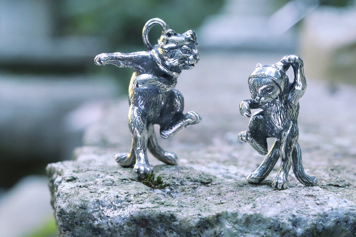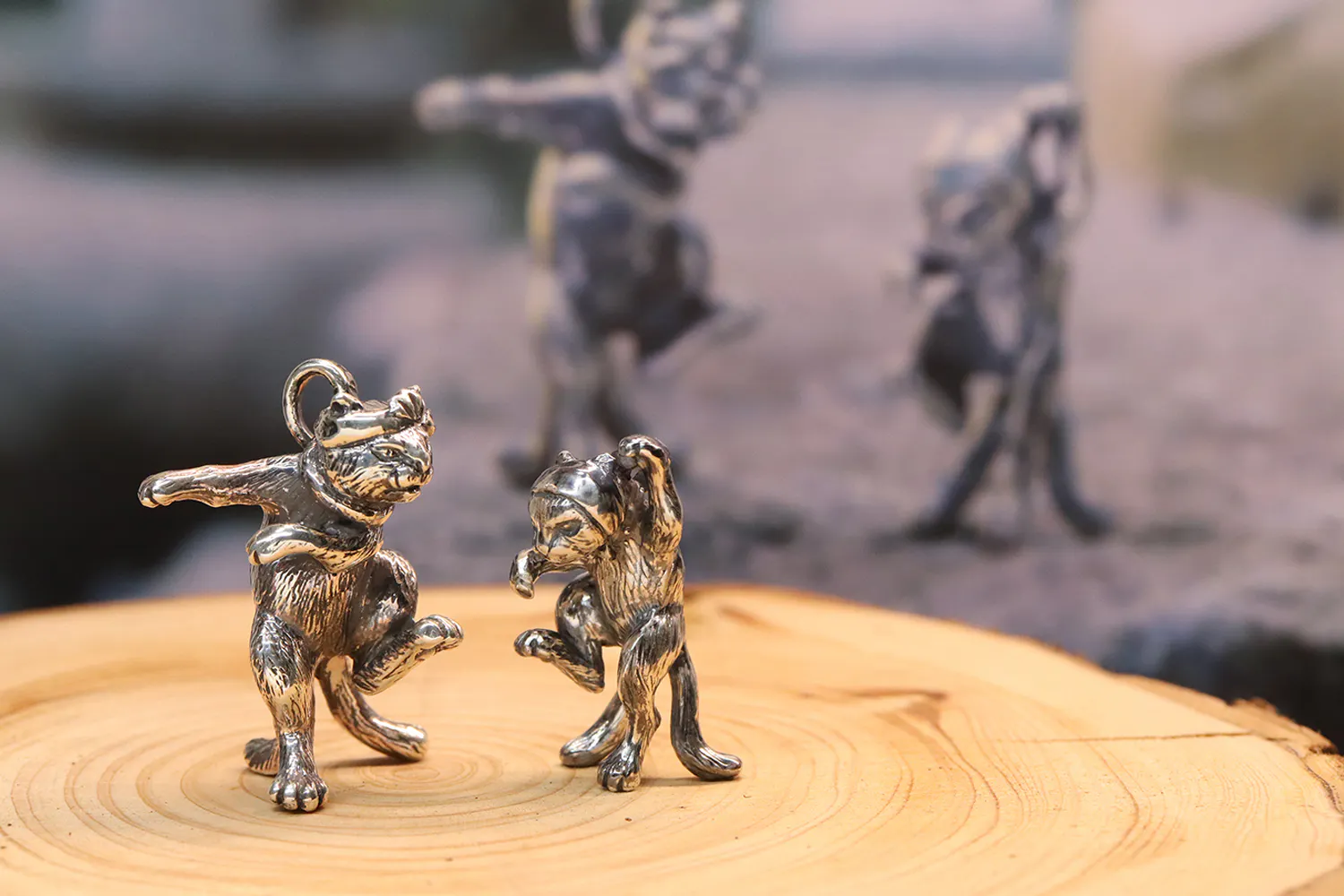 小さなアクセサリーの中のキャラクターの表情、筋骨、動物の毛並みや鳥の羽、爪や肉球を見てきっと驚くことでしょう。一方で、生命力あふれるダイナミックな表現も大切にしています。