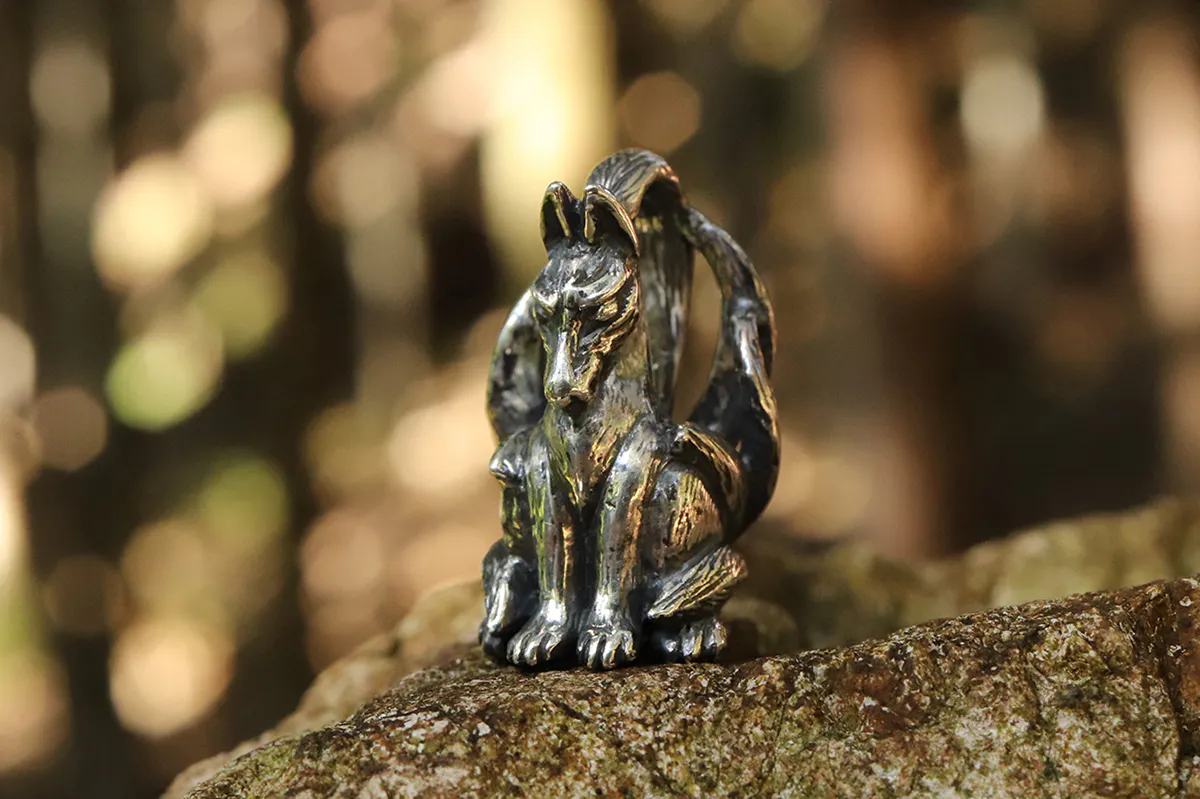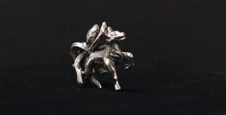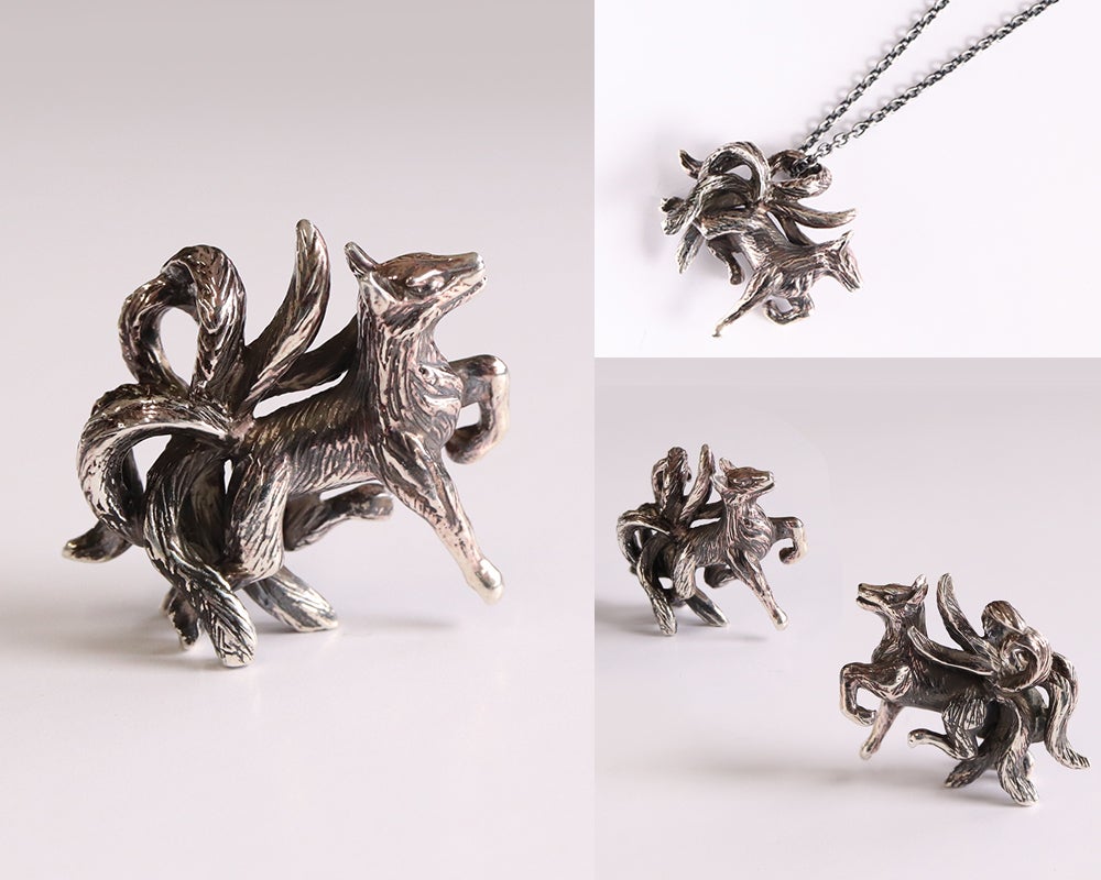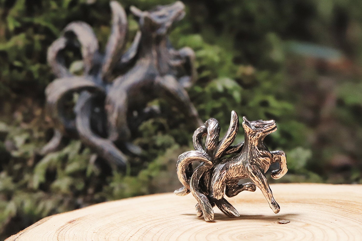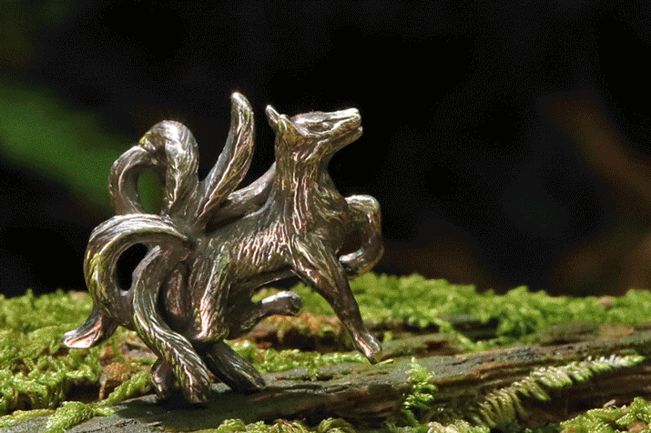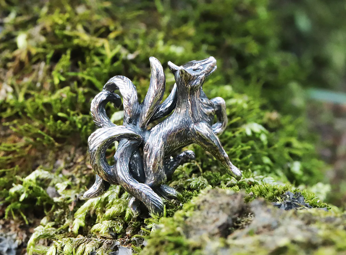 この九尾の狐は新しい作品になります。もう一つの九尾とは対照的に躍動感ある動きを表現した作品。裏の部分まで美しく仕上げています。