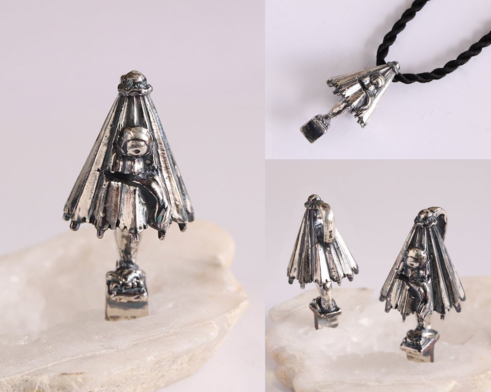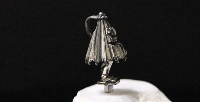絵画のような平面の作品も、原型師の感性と技術で立体アクセサリーに仕立てます。