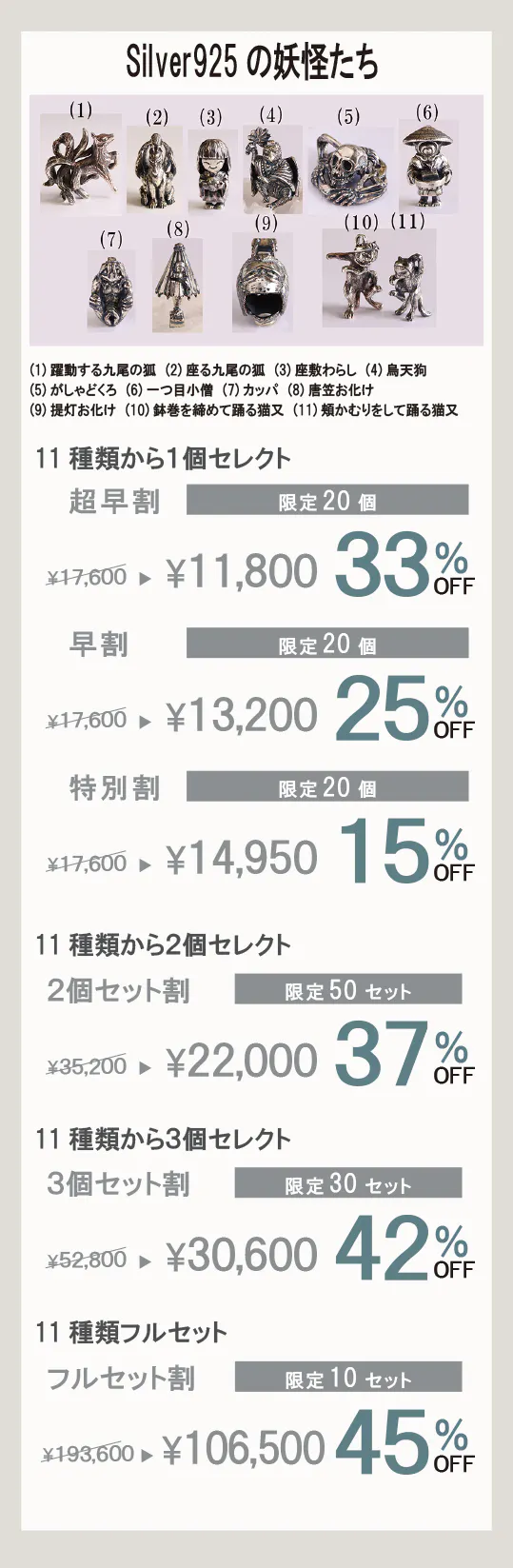 全ての妖怪商品がSILVER925(いぶし銀仕上げ)