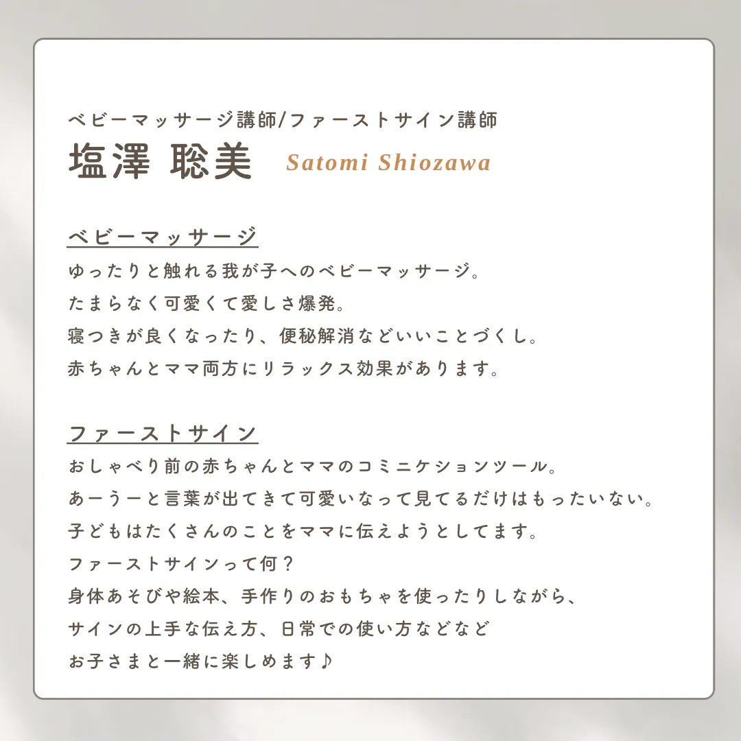 ・ベビーマッサージ教室(ルカフェヌフ様 or オンライン)