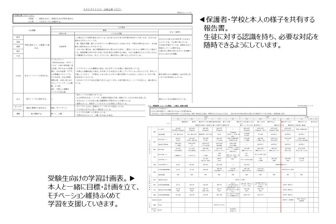 また、所属している学校へ復帰したい生徒のために、学校の先生とレイパスでの様子を共有する報告書や会議を通して、学校側での受け入れ体制をとってもらうこともあります。