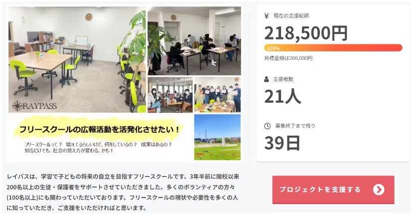 目標額より多くのご支援をいただいた場合、フリースクールの運営費・広報活動費等にあてさせていただきます。