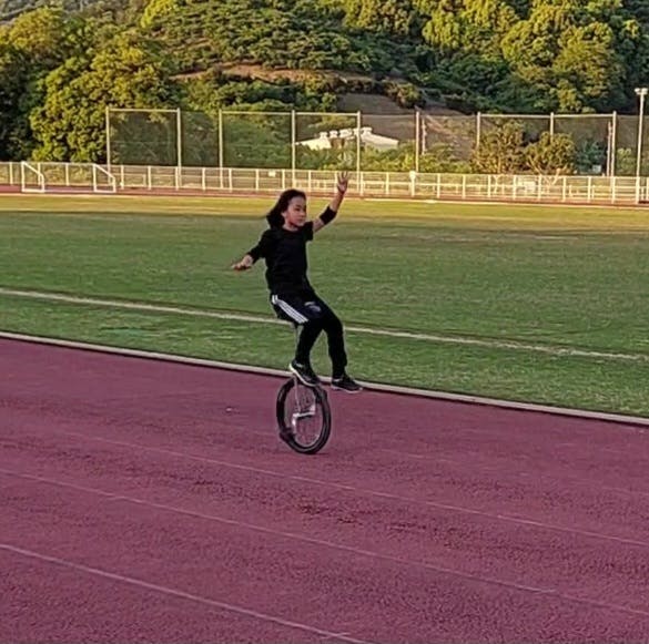 私が一輪車に初めて乗ったのは小学一年生。友達と一緒に乗るのが楽しくて毎日乗っていました。一輪車は、1人でもみんなと一緒でもできるのが、私にとって1番の魅力です。地元のクラブに入りいろんな競技があるのを知り、ライバルと一緒に練習して競うのが楽しくて大好きになりました。競い合う中でタイヤ乗りが得意だとわかり、全日本大会にむけて過去の大会記録を調べてもらいました。目標タイムがわかり、夢中で目標タイムを目指し練習すると、タイムが速くなりましたが、途中でタイムが伸びなくなり悩んでいたら、Instagramでタイヤ乗りが速い選手を見つけ、お父さんにDMを送ってもらいました。私のタイヤ乗り動画を見てもらいアドバイスをもらうと、そこからタイムが速くなっていきました。ドキドキしながら本番の2023年全日本トラックレース大会、タイヤ乗り競技で優勝しました。アドバイスをくれた選手に優勝を伝え、記念撮影してもらい嬉しかったです。世界大会というより大きなステージで私の技術を試したいです。