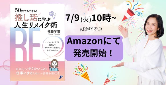 コロナという大きなアクシデントも自分で起業していたからこそ対応できました。コロナの時にオンラインに切り替えたことで、より自由度が広がった経験について記述しています。そして、コロナの時期にSNSでBTSを見つけ、推し活にハマり、それが高じてテレビ出演を3回もすることになりました。私の世界が激変した推し活の素晴らしさについても伝えたいと思っています。ぜひご覧ください。